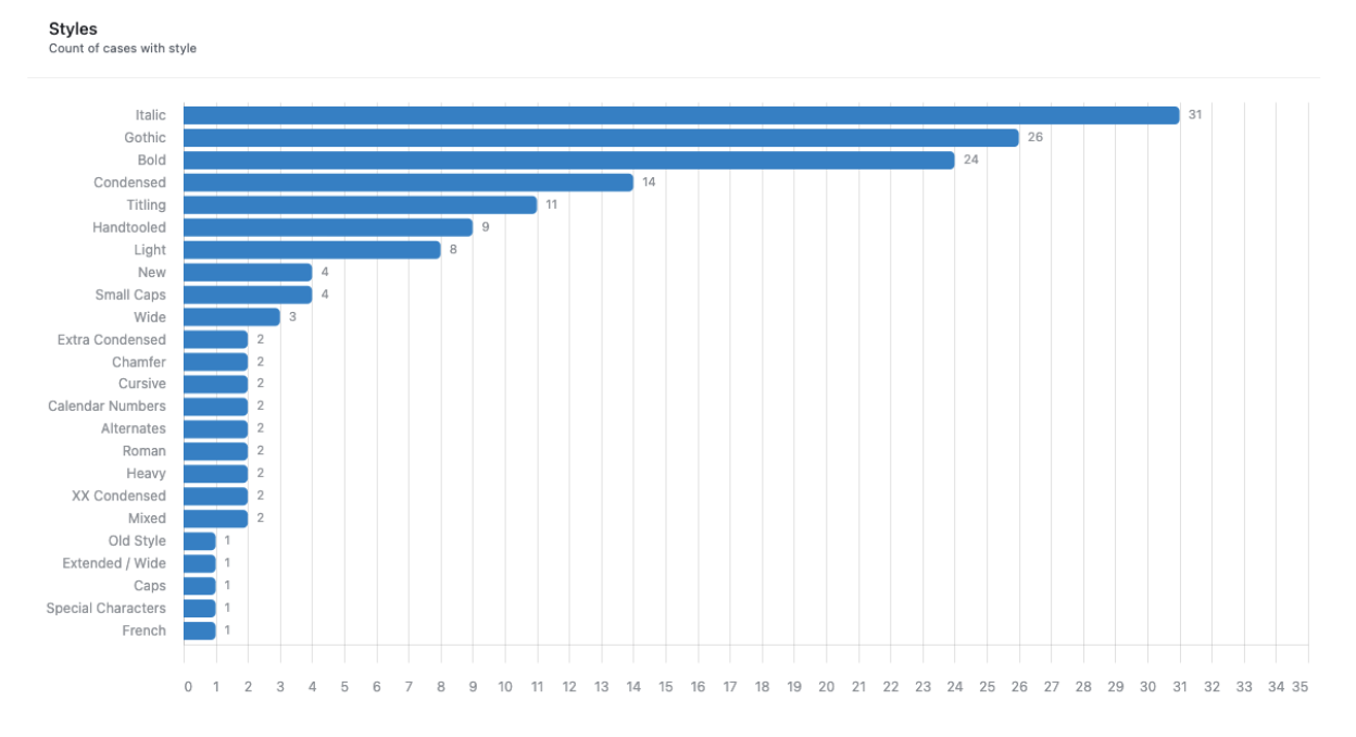 Once live, you will be able to search and filter by typeface, size, material, and more.