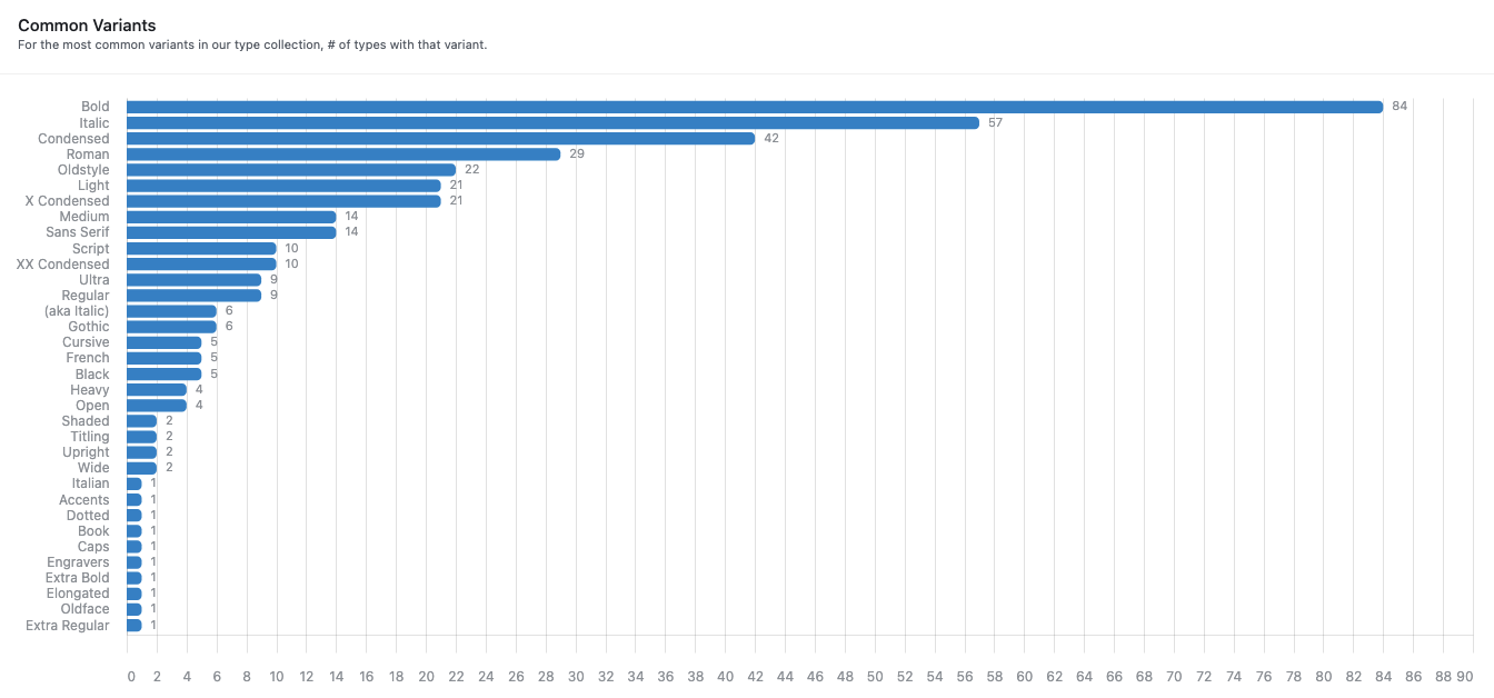 The VBA type inventory/database/website by Amanda Wyatt Visconti was built on documentation work by Kevin McFadden, Garrett Queen, Kristin Adolfson, Josef Beery, Visconti, Richard Cappuccio, and other past and present VBA members. Browse the database below once it is live; descriptive, evaluative, and historical details will be searchable and filterable by typeface name, size, material, case location, and condition.